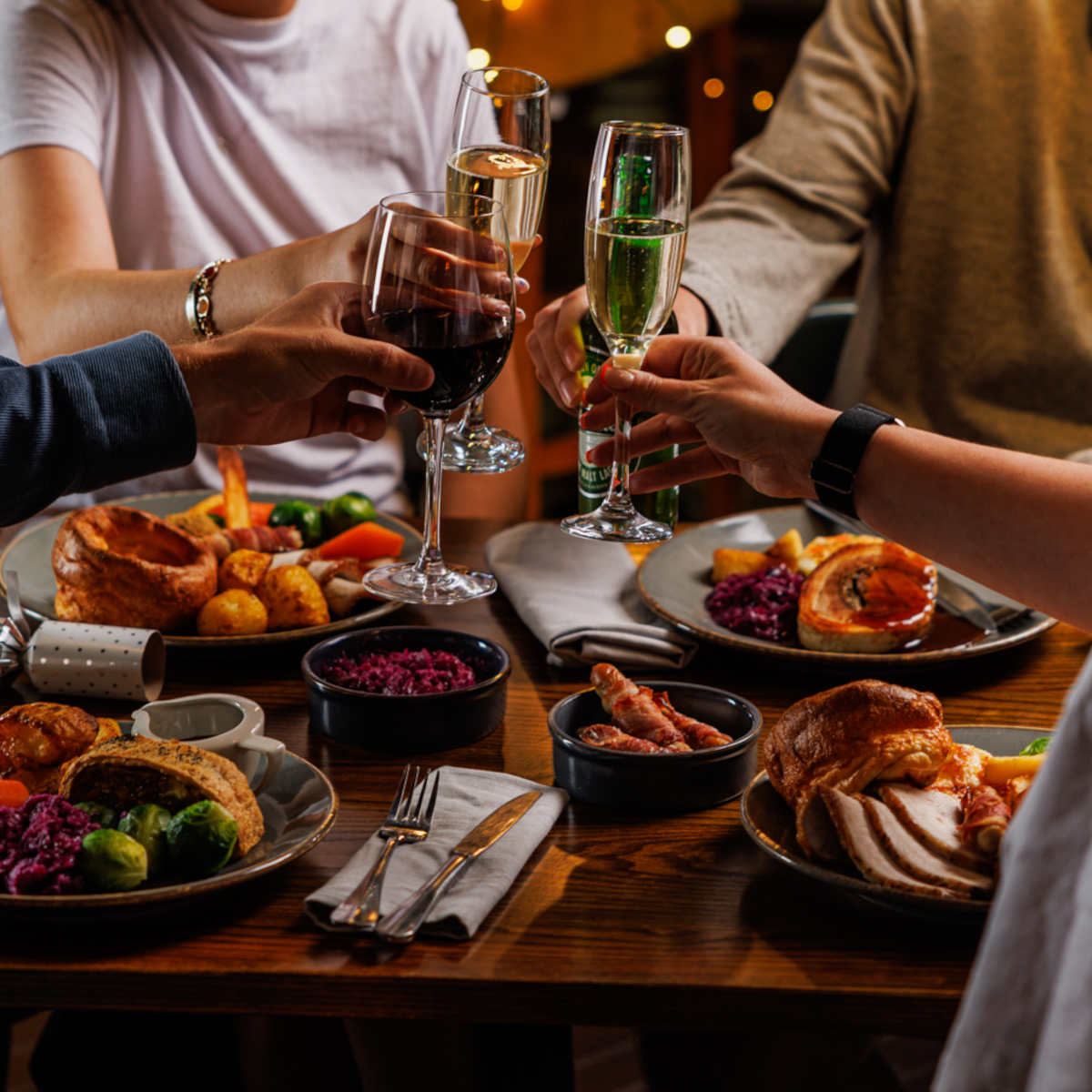 Our three-course festive feast is back! Tuck into melt-in-the-middle breaded brie bites, share laughs over slow-cooked belly pork, and save room for our irresistible festive cheesecake – because calories don’t count at Christmas, right?