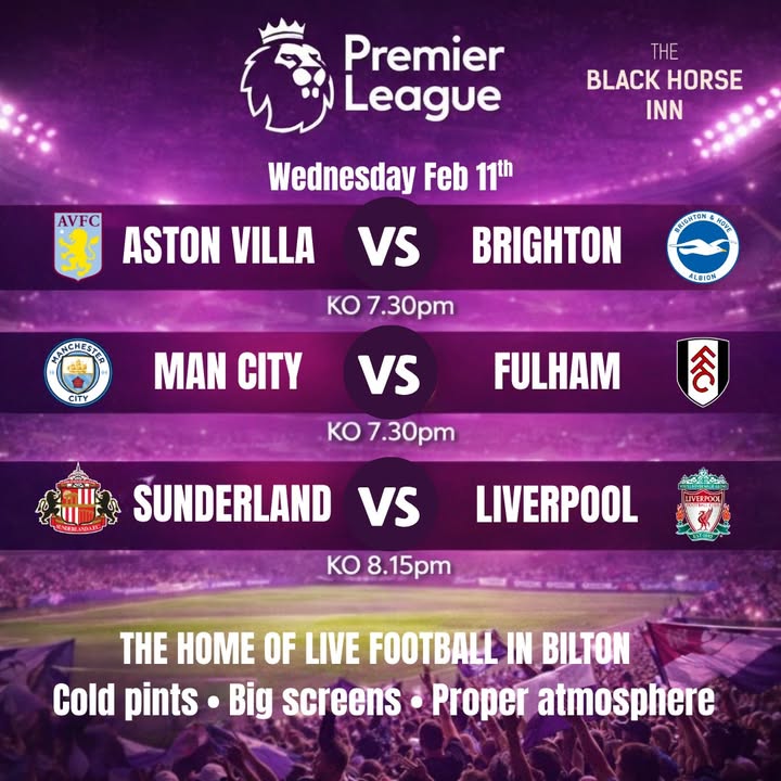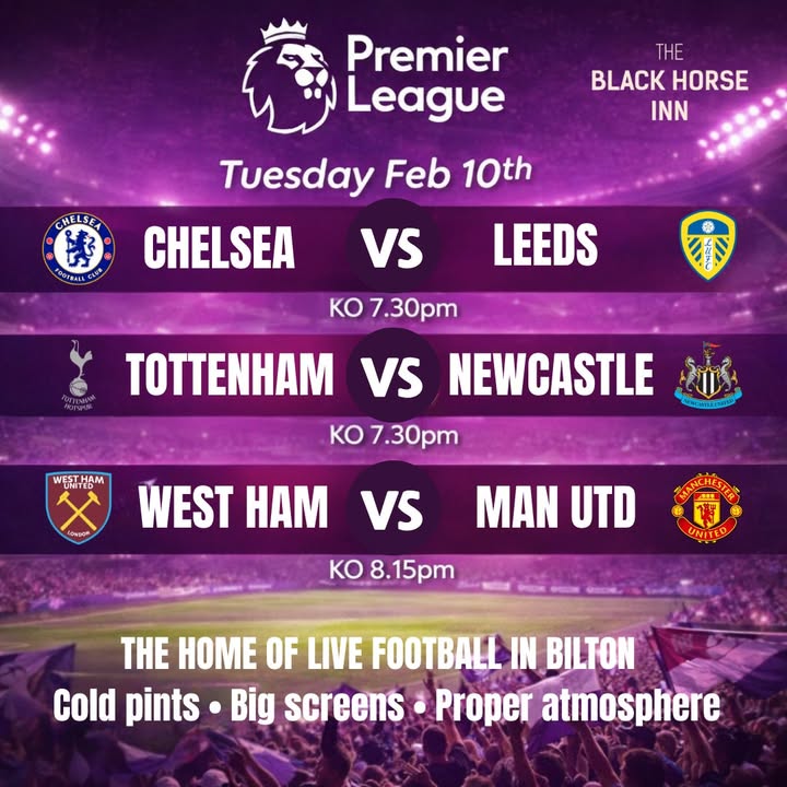 Premier League on tonight… so if your plans involve shouting at a referee, celebrating like you’ve scored yourself, or pretending you always rated that player… we’ve got you covered 😏 All the matches live on our screens, cold pints ready, and the kitchen’s open ‘til 8PM if you need lining before kick-off. Bring your mates, your opinions, and your questionable football knowledge. Walk-ins welcome — just don’t turn up late and expect the best seat 👀⚽
