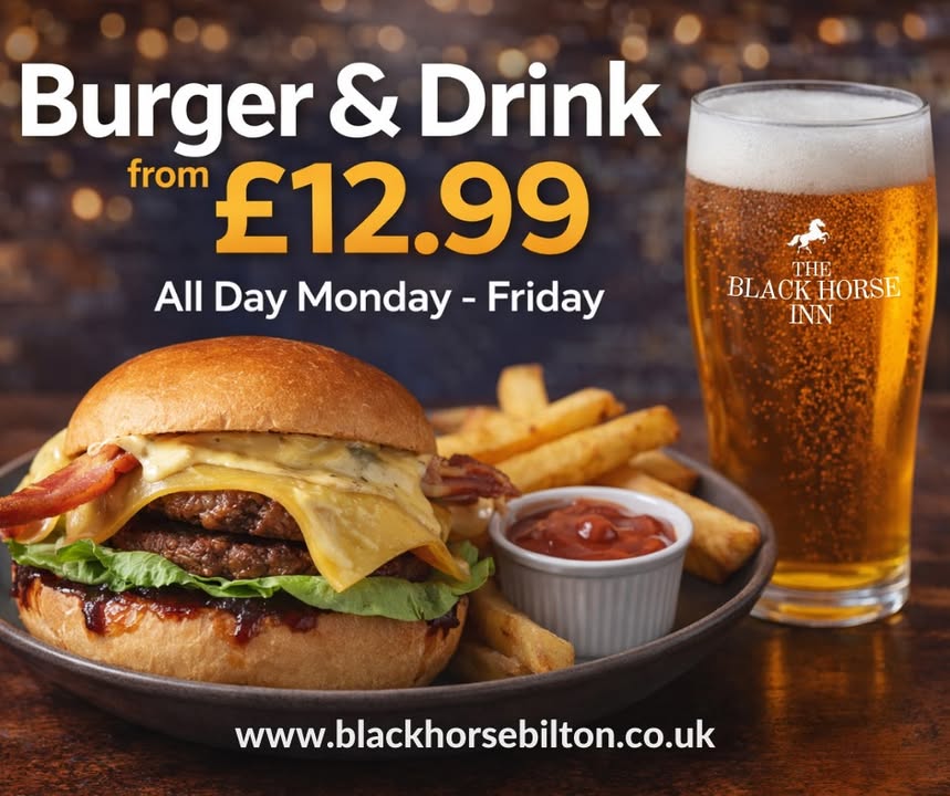 Got a burger craving that needs sorting? 🍔🍻 Join us Monday to Friday for our Burger & Drink from £12.99 — available all day, every weekday. Perfect for a lunch stop, after-work bite, or an easy midweek treat without breaking the bank. Great burgers, cold drinks, and proper pub atmosphere to match — what more do you need? No cooking. No washing up. Just turn up hungry. Available Monday–Friday, all day.