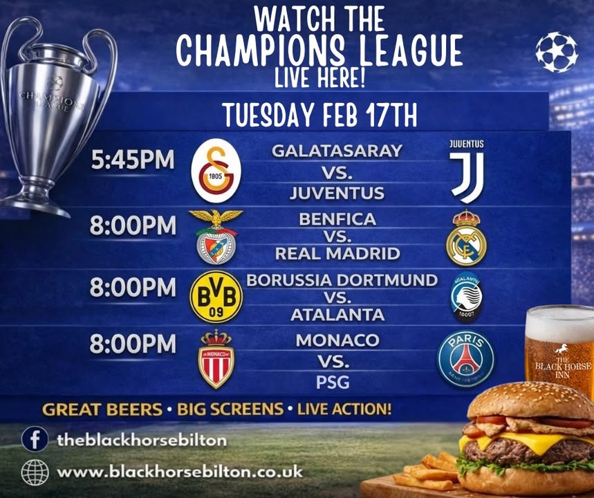 Champions League nights just hit different… 🌙⚽ Big teams. Big goals. And at least one bloke in the pub suddenly claiming he “called it” after the replay 😏 We’ve got all tonight’s fixtures showing live on our screens — so whether you’re backing your lot, watching the drama unfold, or just here for the football + pints combo… you’re in the right place. Expect limbs when the goals go in. Debates at half-time. And someone blaming the ref by full-time. Cold drinks ready. Proper atmosphere guaranteed. Walk-ins welcome — get in early before your mate nicks the good seat 👀🍻